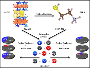 Multicomponent heavy metals adsorption on functionalized swelling micas: Mechanistic insights and structural evolution