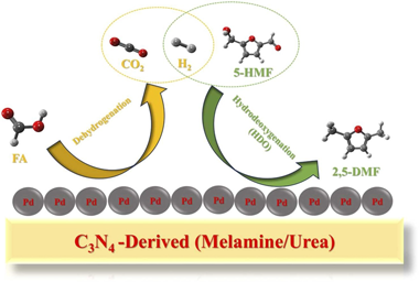 Formic acid dehydrogenation and use as H-donor in 5-hydroxymethylfur-fural hydrodeoxygenation over Pd/C3N4 catalysts