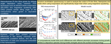 Voids and nanopores in nanocolumnar platinum thin films grown by magnetron sputtering and evaporation at oblique angles: A comparative analysis