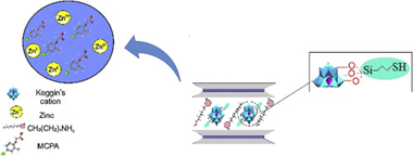 Organomica, C8-2-Mica, was obtained from a high charged synthetic mica, Na-2-Mica, by cation exchange reaction with octylammonium cations and these were used to host other bulky guest species such as polyhydroxy aluminium cations, Al(13)20. The hydrolization of 3-mercaptopropyltrimethoxysilane (MPTMS) allowed the covalent attachment with hydroxyl groups of the oligomeric cation, providing thiol groups that create specific adsorption sites, Al(13)20/SH. The structure of the adsorbents was analysed by XRD and Infrared spectroscopy and these were tested as an adsorbent for the removal of zinc and herbicide MCPA from aqueous solutions. C8-2-Mica was the best adsorbent for MCPA and thiol groups favoured the adsorption of Zn2+. Moreover, Al(13)20/SH showed excellent adsorptive properties for the simultaneous adsorption of MCPA and Zn2+.