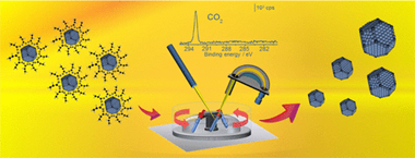 Usually, nanoparticle synthesis methodologies require the use of organic molecules (capping agent, solvent molecules, etc.), which results in carbon deposits on the nanoparticle surface. These residues modify the surface properties mainly affecting the catalytic behavior. In this work, unsupported poly(vinylpyrrolidone) (PVP)-stabilized PtCu (1:3 molar ratio) bimetallic alloy nanoparticles were synthetized and characterized. An alternative surface cleaning method has been designed, which successfully removes the presence of organic fragments. To address this key issue, we have combined a first nanoparticle washing step with a near ambient pressure X-ray photoelectron spectroscopy (NAPXPS) study in order to obtain a clean active site and the total understanding of the carbon elimination mechanism. The dynamic evolution of the surface organic species composition under different gas mixtures at 750 mTorr and 350 degrees C has been studied, and only under CO2 exposure, NAPXPS analysis revealed a total availability of the active site by the removal of the organic nanoparticle coating.