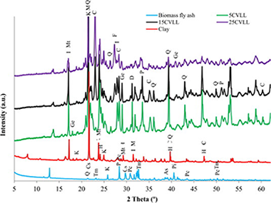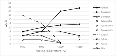 The most representative of greenhouse-crop plant biomass residues of tomatoes (Solanum lycopersicum L.) were selected for this study by using X-ray fluorescence spectrometry (XRF) and X-ray powder diffraction (XRD). The heating dynamics in air in the 600-1150 degrees C range of these residues for the production of renewable energy and the resultant ashes have been investigated. A total of 11 elements were determined by XRF in the biomass ashes and some minor elements. The content of alkaline elements and chlorides decreased as increasing heating temperature and disappeared at 1150 degrees C. Alkaline salts, NaCl and KCl, were volatilized by heating since 800 degrees C. The total contents of S and P in the biomass ashes were associated to CaSO4, and a complex phosphate identified by XRD. CaCO3 present at 600 degrees C was decomposed to CaO with disappearance at 1000 degrees C. By heating, new silicates were formed by solid-state reactions in the biomass residue. The minor elements have been found in a relative proportion lower than 0.9wt.% and they characterized the obtained ashes, with potential use as micronutrients.