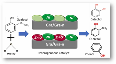 Multicomponent graphene based catalysts for guaiacol upgrading in hydrothermal conditions: Exploring "H2-free" alternatives for bio-compounds hydrodeoxygenation
