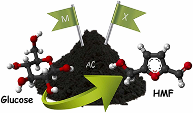 Different metal halide catalysts supported on a commercial active charcoal have been synthesized, activated, characterized and tested in glucose dehydration to 5-hydroxymethylfurfural using a biphasic water/methyl isobutyl ketone media. The influence of the cation nature (K+, Ca2+, Sr2+, Mg2+) and anion nature (F-, Cl-, Br-) on the catalytic performance of the solid is discussed in terms of glucose conversion, HMF yield and products selectivity. The activation of the impregnated catalysts results in a great diversity of active sites, such as Bronsted sites (carboxylic groups), basic sites (metal oxide), and Lewis acid site (Mn+). Their distribution within the samples determinates the resulting products and the final HMF yield.