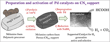 Preparation, characterization and activation of Pd catalysts supported on CNx foam for the liquid phase decomposition of formic acid