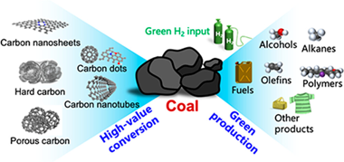 Coal resources are one of the key energy sources and essential for modern economic development. Despite the traditional coal industries having made considerable contributions to chemical production and energy storage, the accompanying environmental pollution and high energy consumption have also arisen that cause significant influence of the ecological balance. Hence, there is an urgent need to exploit feasible approaches to the sustainable utilization of coal resources. This review begins with a comprehensive summary of the representative coal chemistry technologies with critical discussions. Subsequently, a novel strategy coupled with green hydrogen is discussed for sustainable conversion of coal and highly efficient manufacture of downstream products. Moreover, the unique role of coal in terms of high-value-added carbon material production is highlighted as a low-cost resource for distinct applications. Finally, we propose several future directions for advanced coal chemistry development.