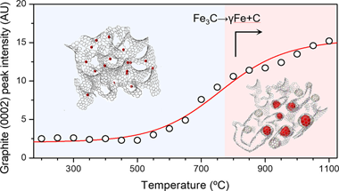Carbon is a critical material for existing and emerging energy applications and there is considerable global effort in generating sustainable carbons. A particularly promising area is iron-catalyzed graphitization, which is the conversion of organic matter to graphitic carbon nanostructures by an iron catalyst. In this paper, it is reported that iron-catalyzed graphitization occurs via a new type of mechanism that is called homogeneous solid-state catalysis. Dark field in situ transmission electron microscopy is used to demonstrate that crystalline iron nanoparticles “burrow” through amorphous carbon to generate multiwalled graphitic nanotubes. The process is remarkably fast, particularly given the solid phase of the catalyst, and in situ synchrotron X-ray diffraction is used to demonstrate that graphitization is complete within a few minutes.