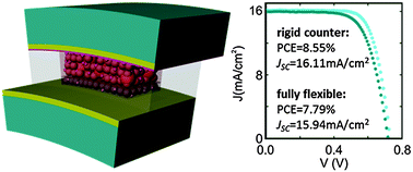 We demonstrate that a combined optimization approach based on the sequential alternation of theoretical analysis and experimental realization gives rise to plastic supported dye solar cells for which both light harvesting efficiency and electron collection are maximized. Rationalized configurations with optimized light trapping and charge extraction are realized to achieve photoanodes on plastic prepared at low temperature, showing a power conversion efficiency of 8.55% and a short circuit photocurrent of 16.11 mA cm−2, unprecedented for plastic based dye solar cell devices. Furthermore, the corresponding fully flexible designs present stable mechanical properties after several bending cycles, displaying 7.79% power conversion efficiency, an average broadband internal quantum efficiency above 90%, and a short circuit photocurrent of 15.94 mA cm−2, which is the largest reported value for bendable cells of this sort to date.
