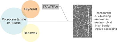 Plasticized cellulose bioplastics with beeswax for the fabrication of multifunctional, biodegradable active food packaging