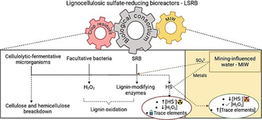 Research on the reutilization of crop residues has gained significant attention as a strategy for generating energy and high-value chemicals from renewable sources, while simultaneously reducing feedstock costs and mitigating environmental pollution. Crop residues have been effectively applied in lignocellulosic sulfate-reducing bioreactors (LSRBs) for the treatment of mining-influenced water. A comprehensive evaluation of the state-of-the-art in LSRBs reveals their potential for leveraging syntrophic aerobic-anaerobic interactions between sulfate-reducing bacteria and facultative species, alongside cellulolytic-fermentative microorganisms, to facilitate the pretreatment of lignocellulosic biomass for biorefinery applications. Key variables influencing the availability of enzymatic substrates and the activity of lignin-degrading enzymes are identified, along with strategies to enhance catalytic efficiency. Additionally, approaches to ensure the availability of trace elements and to control the production of toxic intermediates that may hinder treatment processes are elucidated. Prominent strategies include the application of microaeration and the use of co-substrates. An innovative aspect is the exploitation of metal sulfide precipitation to mitigate toxicity while preventing the sequestration of hydrogen peroxide - an essential substrate for enzymatic activity - by sulfides generated during the process. This review emphasizes the need for scientific advancements focused on optimizing the valorization of lignocellulosic residues. A particular focus is placed on advancing the understanding of lignin's anaerobic degradation mechanisms, especially in systems co-treating lignocellulosic waste and mining-influenced waters. Such advancements hold promise for enhancing the efficiency and sustainability of biorefinery operations.