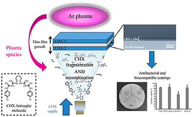 Multifunctional antimicrobial chlorhexidine polymers by remote plasma assisted vacuum deposition