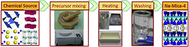 Na-Mica-4, a synthetic fluorophlogopite, is an attractive adsorbent. However, the synthesis at large scale demands an economically prized, feasible scalable and sustainable synthesis method, which requires a deep knowledge of the influence of each synthesis step. A set of Na-Mica-4 were synthesized by methods that had one synthesis parameter as variable. The purity, crystallinity and heteroatoms distribution were analysed thorough X-ray diffraction and nuclear magnetic resonance. The results shed a light on the main factors for the design of the final product and indicated that an environmental friendship synthesis could be possible.