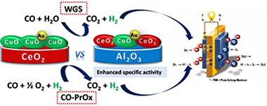 WGS and CO-PrOx reactions using gold promoted copper-ceria catalysts: "Bulk CuO-CeO2 vs. CuO-CeO2/Al2O3 with low mixed oxide content"