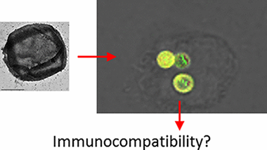 The immunocompability of polyelectrolyte capsules synthesized by layer-by-layer deposition has been investigated. Capsules of different architecture and composed of either non-degradable or biodegradable polymers, with either positively or negatively charged outer surface, and with micrometer size, have been used, and the capsule uptake by different cell lines has been studied and quantified. Immunocompatibility studies were performed with peripheral blood mononuclear cells (PBMCs). Data demonstrate that incubation with capsules, at concentrations relevant for practical applications, did not result in a reduced viability of cells, as it did not show an increased apoptosis. Presence of capsules also did not result in an increased expression of TNF-α, as detected with antibody staining, as well as at mRNA level. It also did not result in increased expression of IL-6, as detected at mRNA level. These results indicate that the polyelectrolyte capsules used in this study are immunocompatible.