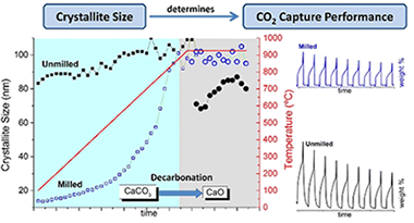 Under Calcium-Looping “realistic” operation conditions (high CO2 concentration and temperature), the multicycle CO2 capture capacity performance of CaO derived from limestone and dolomite is inversely related to its crystallite size. Ball-milling the raw sorbents results in the formation of larger nascent CaO nanocrystals during the calcination. Constraint sintering effect due to inert compounds such as dolomitic MgO mitigates the inactivation.