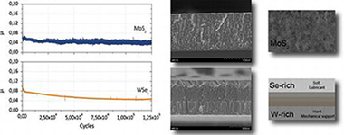 Solid lubricant behavior of MoS2 and WSe2-based nanocomposite coatings