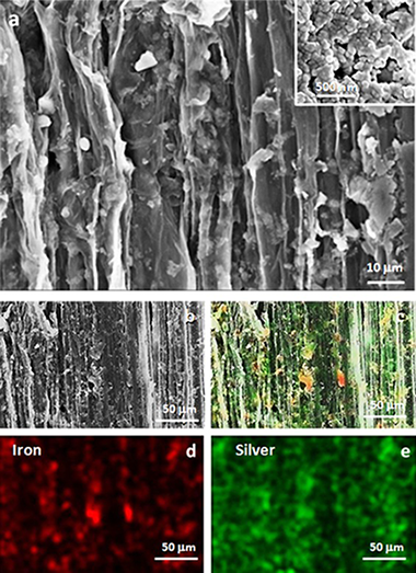 In this work a cheap detector of organic molecules is developed. It comprises a cellulose fiber doped with a mixture of magnetite and reduced silver nanoparticles, the latter ones synthesized anew. The nanoparticles and the fiber were characterized with well-established spectroscopic, microscopic and magnetic techniques, namely infrared, UV–vis spectroscopies, vibrating sample magnetometry and electronic microscopies. The so-obtained doped-fibers were tested as surface enhanced Raman spectroscopy detector in aqueous samples with a diluted mixture of two pollutant models (rhodamine 6G and picric acid), being able to differentiate between both organic compounds. Hence, the nanoparticle-impregnated fiber is proposed as a reliable preliminary qualitative and semiquantitative test of the presence of specific organic molecules in solutions. Moreover, the magnetite nanoparticles provide the detector with a saturation magnetization value that enables the separation of the fiber from the solution with the aid of a commercial magnet.