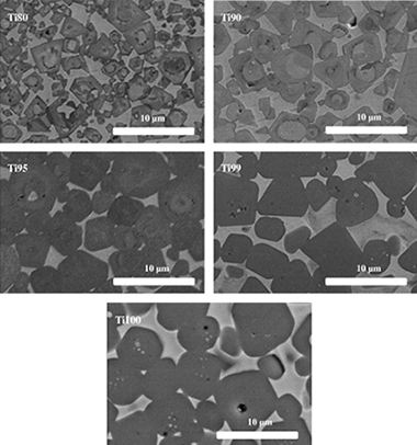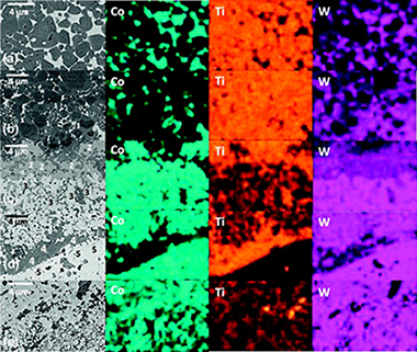 (TixTa1−x)(C0.5N0.5)–Co-based cermets with various Ta contents (x = 0, 0.01, 0.05, 0.1 and 0.2) were oxidized at 900 °C for 48 h in static air. A parabolic rate law, which is indicative of the formation of a protective oxide layer, was observed for all samples. The multi-layered oxide scale and the internal oxidation region that formed as the oxidation progressed toward the interior of the cermet specimens were characterized using XRD, SEM and EDS. The enhanced oxidation resistance achieved in cermets composed by a hard component with stoichiometry Ti0.95Ta0.05C0.5N0.5 may satisfy the optimal requirements for many applications in the field of cutting tools.