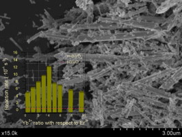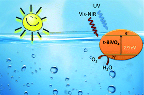Erbium–yttrium co-doped BiVO4 with a tetragonal structure is synthesized by means of a surfactant free hydrothermal method. The studied photocatalyst shows good photoactivity under sun-like excitation for the degradation of methylene blue (MB) and for O2 evolution. From structural and morphological characterization, it has been stated that the presence of lanthanides induces the stabilization of the tetragonal phase. This is probably due to the substitutional occupation that occurs in the BiVO4 lattice. The photocatalytic performance under visible-NIR radiation clearly evidences the occurrence of an up-conversion process involved in the overall photo-electronic mechanism. The tetragonal phase Er0.0075,Y0.03–Bi0.9625VO4 system gives the highest O2 evolution rate (425 μmol g−1 h−1) under sun-like excitation, being 8 times higher than that attained for m-BiVO4 (53 μmol g−1 h−1).