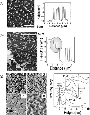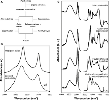 Biomimetics of materials is based on adopting and reproducing a model in nature with a well-defined functionality optimized through evolution. An example is barrier polymers that protect living tissues from the environment. The protecting layer of fruits, leaves, and non-lignified stems is the plant cuticle. The cuticle is a complex system in which the cutin is the main component. Cutin is a biopolyester made of polyhydroxylated carboxylic acids of 16 and 18 carbon atoms. The biosynthesis of cutin in plants is not well understood yet, but a direct chemical route involving the self-assembly of either molecules or molecular aggregates has been proposed. In this work, we present a combined study using experimental and simulation techniques on self-assembled layers of monomers selectively functionalized with hydroxyl groups. Our results demonstrate that the number and position of the hydroxyl groups are critical for the interaction between single molecules and the further rearrangement. Also, the presence of lateral hydroxyl groups reinforces lateral interactions and favors the bi-dimensional growth (2D), while terminal hydroxyl groups facilitate the formation of a second layer caused by head–tail interactions. The balance of 2D/3D growth is fundamental for the plant to create a protecting layer both large enough in 2D and thick enough in 3D.