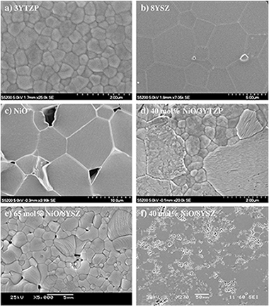 NiO/8YSZ (8 mol% Y 2O 3-stabilized ZrO 2) composites with different NiO contents (10, 20 and 40 mol%) have been fabricated by a conventional route of mechanical mixing of NiO and 8YSZ powders and sintering at 1500 °C for 10 h in air. The resulting microstructures have been characterized by electron microscopy. In 10 and 20 mol% NiO/8YSZ, the composite is formed by isolated NiO particles surrounded by zirconia matrix grains; this phase is interconnected in the 40 mol% NiO/8YSZ composite. Mechanical tests at constant strain rate and at constant load were conducted on these materials at temperatures of up to 1350 °C. Different behaviors were found depending on the percolation of the NiO phase. Microstructural observations after deformation are essential to understand the overall mechanical behavior of the composites.