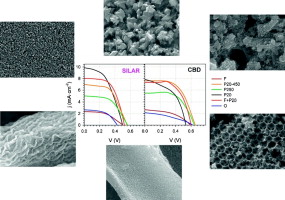 Here we analyze the effect of two relevant aspects related to cell preparation on quantum dot sensitized solar cells (QDSCs) performance: the architecture of the TiO 2 nanostructured electrode and the growth method of quantum dots (QD). Particular attention is given to the effect on the photovoltage, V oc, since this parameter conveys the main current limitation of QDSCs. We have analyzed electrodes directly sensitized with CdSe QDs grown by chemical bath deposition (CBD) and successive ionic layer adsorption and reaction (SILAR). We have carried out a systematic study comprising structural, optical, photophysical and photoelectrochemical characterization in order to correlate the material properties of the photoanodes with the functional performance of the manufactured QDSCs. The results show that the correspondence between photovoltaic conversion efficiency and the surface area of TiO 2 depends on the QDs deposition method. Higher V oc values are systematically obtained for TiO 2 morphologies with decreasing surface area and for cells using CBD growth method. This is systematically correlated to a higher recombination resistance of CBD sensitized electrodes. Electron injection kinetics from QDs into TiO 2 also depends on both the TiO 2 structure and the QDs deposition method, being systematically faster for CBD. Only for electrodes prepared with small TiO 2 nanoparticles SILAR method presents better performance than CBD, indicating that the small pore size disturb the CBD growth method. These results have important implications for the optimization of QDSCs.Elect