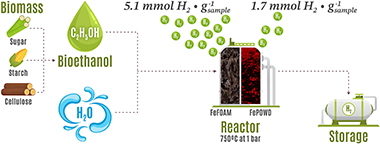 Hydrogen is the ideal energy vector to reduce our fossil-fuels dependency and diminish the climate change consequence. However, current production is still methane based. It is possible to produce hydrogen using bioethanol from the alcoholic fermentation of organic waste by chemical looping processes, but unfortunately current redox systems generate hydrogen with significant traces of CO. In the case of proton exchange membrane fuel cells (PEMFC), hydrogen must be highly purified to produce electricity. Here, high porosity inter-connected Fe2O3 foams doped with 2 wt% Al2O3 were manufactured by the freeze-casting method, obtaining around 5.1 mmol H2$g?1 sample of highly pure hydrogen (<10 ppm of CO) consuming only 3.42 mmol of ethanol on each redox cycles, with no deactivation. This result shows the possibility of using an abundant and inexpensive raw material as the iron oxide to scale-up the direct pure H2 production and facilitates its use in the automotive sector.