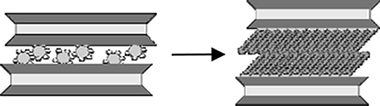 The interlayer space of the highly charged synthetic Na-Mica-4 can be modified by ion-exchange reactions involving the exchange of inorganic Na + cations by surfactant molecules, which results in the formation of an organophilic interlayer space. The swelling and structural properties of this highly charged mica upon intercalation with n-alkylammonium (RNH 3) + cations with varying alkyl chain lengths (R = C12, C14, C16, and C18) have been reported. The stability, fine structure, and evolution of gaseous species from alkylammonium Mica-4 are investigated in detail by conventional thermogravimetric analysis (TGA), Fourier transform infrared spectroscopy (FTIR), in situ X-ray diffraction (XRD), and solid-state nuclear magnetic resonance (MAS NMR) techniques. The results clearly show the total adsorption of n-alkylammonium cations in the interlayer space which expands as needed to accommodate intercalated surfactants. The surfactant packing is quite ordered at room temperature, mainly involving a paraffin-type bilayer with an all-trans conformation, in agreement with the high density of the organic compounds in the interlayer space. At temperatures above 160 °C, the surfactant molecules undergo a transformation that leads to a liquid-like conformation, which results in a more disordered phase and expansion of the interlayer space.
