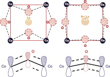 Two different cobaltites, LaCoO3 and La0.5Sr0.5CoO3-delta, have been prepared and characterized by means of high energy Co K-edge and low energy O K-edge X-ray absorption spectroscopy (XAS). Even though half of the La(III) is substituted by Sr(II), little or no changes call be detected in the formal oxidation state of cobalt atoms. The presence of strontium cations induces two main effects in the chemical and electronic state of the perovskite. The charge balance with Sr(II) species is reached by the formation of oxygen vacancies throughout the network, which explains the well-known increase in the reactivity of this Substituted perovskite. O K-edge XAS experiments show that the Sr(II) species induce the transitions of d electrons of cobalt cations from low to high Spill Configuration. We propose that this change in Spill Multiplicity is induced by two cooperative effects: the oxygen vacancies. creating five coordinated cobalt atoms, and the bigger size of Sr(II) cations, aligning the Co-O-Co atoms, and favoring the overlapping of pi-symmetry cobalt and oxygen orbitals, reducing the splitting energy of e(g) and t(2g) levels.