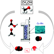 Dielectric Barrier Discharges (DBD) operated at atmospheric pressure and working at reduced temperatures (T < 115 °C) and a copper–manganese oxide catalyst are combined for the direct decomposition and the steam reforming of methanol (SRM) for hydrogen production and for the preferential oxidation of CO (CO-PROX)