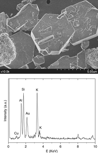 Kalsilite (the low-temperature form of KAlSiO4) is used as the precursor of leucite, an important component in porcelain-fused-to-metal and ceramic-restoration systems, and it has also been proposed as a high-thermal expansion ceramic for bonding to metals. The present study reports the hydrothermal synthesis and characterization of pure kalsilite from kaolinite in subcritical conditions, as well as the characterization of the intermediate products by means of XRD, 29Si and 27Al MAS NMR, IR, SEM, and TEM. Effects of time, temperature, and pH on the reaction products are analyzed. The experimental data indicate that pure kalsilite is obtained after hydrothermal treatment of kaolinite at 300 °C for 12 h in 0.5 M KOH solution. Longer reaction times increase the crystallinity of the structure, whereas lower reaction times give rise to the metastable ABW-type KAlSiO4 polymorph. Lower temperatures are not sufficient to produce kalsilite, but zeolite W is obtained instead as the unique reaction product. Finally, the pH of the aqueous solution in contact with kaolinite is an important parameter for the synthesis of kalsilite, which must be ≥13.70.