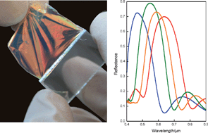 Self-standing, flexible Bragg mirror films of high refractive index contrast and showing intense and wide Bragg peaks are herein presented. Nanoparticle-based one-dimensional photonic crystals are used as templates to infiltrate a polymer, which provides the multilayer with mechanical stability while preserving the dielectric contrast existing in the mold. Such films can be lifted off the substrate and used to coat another surface of arbitrary shape.