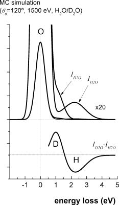 A nondestructive method to distinguish between hydrogen (H) and deuterium (D) at surfaces by reflection electron energy loss spectroscopy is presented. It is based on the analysis of the energy distributions of electrons elastically backscattered from surfaces containing H or D. We consider standard and deuterated water ices as test surfaces. The recoil energy of the backscattered electrons depends on the atomic mass of the targets, and the contributions of H, D, and O to the measured spectra can be easily separated. The results of Monte Carlo simulations corroborate the experimental findings.