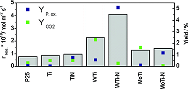 New W,N-doped TiO2 anatase-based materials are synthesized having both unprecedent high activity and selectivity in the gas-phase partial oxidation of aromatic hydrocarbons using sunlight as excitation energy and molecular oxygen as oxidant.