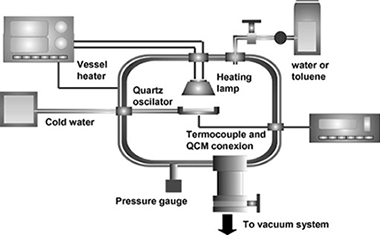 The microstructure of TiO2 thin films prepared by plasma enhanced chemical vapour deposition has been assessed by using water adsorption–desorption isotherms measured by means of a quartz crystal monitor (QCM). Thin films have been deposited by using titanium tetraisopropoxide as a precursor and by changing different experimental parameters of the deposition procedure such as temperature of the substrate, pressure, and gas composition in the plasma. The films were characteristic of different microstructures that, according to their scanning electron micrographs, have been categorized as columnar, homogeneous and crystalline. They also have different refraction indices with values between 1.95 and 2.41. Water and toluene adsorption isotherms have been measured by means of a QCM monitor for the films heated in vacuum to remove the water previously adsorbed in their pores. The analysis of the adsorption-desorption isotherms by means of the so called “t-plots” and the determination of the pore size distribution curves rendered that the three kinds of microstructures presented different kinds of isotherms and water adsorption behaviours. Columnar films consisted of micro- and meso-pores had a very high adsorption hystheresis at low pressures. Homogeneous films only had micropores and presented no adsorption hystheresis. Crystalline films consisted of both micro- and meso-pores but had no adsorption hystheresis at low pressures. A zone scheme has been proposed to account for the microstructure of the films depending on the plasma conditions utilized. The implications of the different water adsorption behaviours of the films for the determination of their refraction indices are discussed.