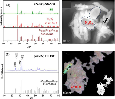 Insights into the structural and physicochemical properties of Zn-Bi-O composites for efficient photodegradation of caffeic acid, rhodamine B and methyl orange