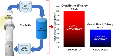 Thermochemical energy storage (TCES) has attracted interest in the last years due to the possibility of attaining high energy densities, seasonal storage capacity and greater efficiencies than currently commercial thermal energy storage systems using molten salts. This work analyses the potential of an ultra-high temperature TCES system based on the SrCO3/SrO system. The process relies upon the reversible decomposition of SrCO3 into SrO and CO2. As proposed in previous works for the integration of the Ca-Looping process to store energy in CSP plants, both the calcination (endothermic) and carbonation (exothermic) reactions are carried out in a closed CO2 loop. At these conditions, the required temperature to attain full calcination in short residence times is around 1400 degrees C whereas carbonation takes place at about 1200 degrees C. Using this process, the energy density potentially achievable by the storage material is very high (around 2000 MJ/m(3)) while the ultra-high carbonation temperature would improve thermoelectric efficiency. The enhancement of the multicycle performance of the SrCO3/SrO system using refractory additives is also explored. Even though current commercial CSP plants with tower technology cannot yet operate at these ultra-high temperatures, recent advances in the development of high-temperature solar receivers could allow operation at 1400 degrees C in the medium term. Finally, a conceptual model of the integration of the SrCO3/SrO system in a CSP plant supports higher overall efficiency and energy density, but lower solar-to-electric efficiency due to thermal losses.