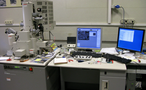 - Microscopio SEM, modelo Hitachi S4800 SEM-FEG: cañón de emisión de campo de cátodo frío y voltaje de 0.5-30 kV, resolución de 1 nm a 15kV. Dotado de analizador EDX Bruker-X Flash-4010 con una resolución de 133 eV (en la línea MnKα) y detector con portamuestras para trabajar en modo transmisión (STEM-in-SEM).